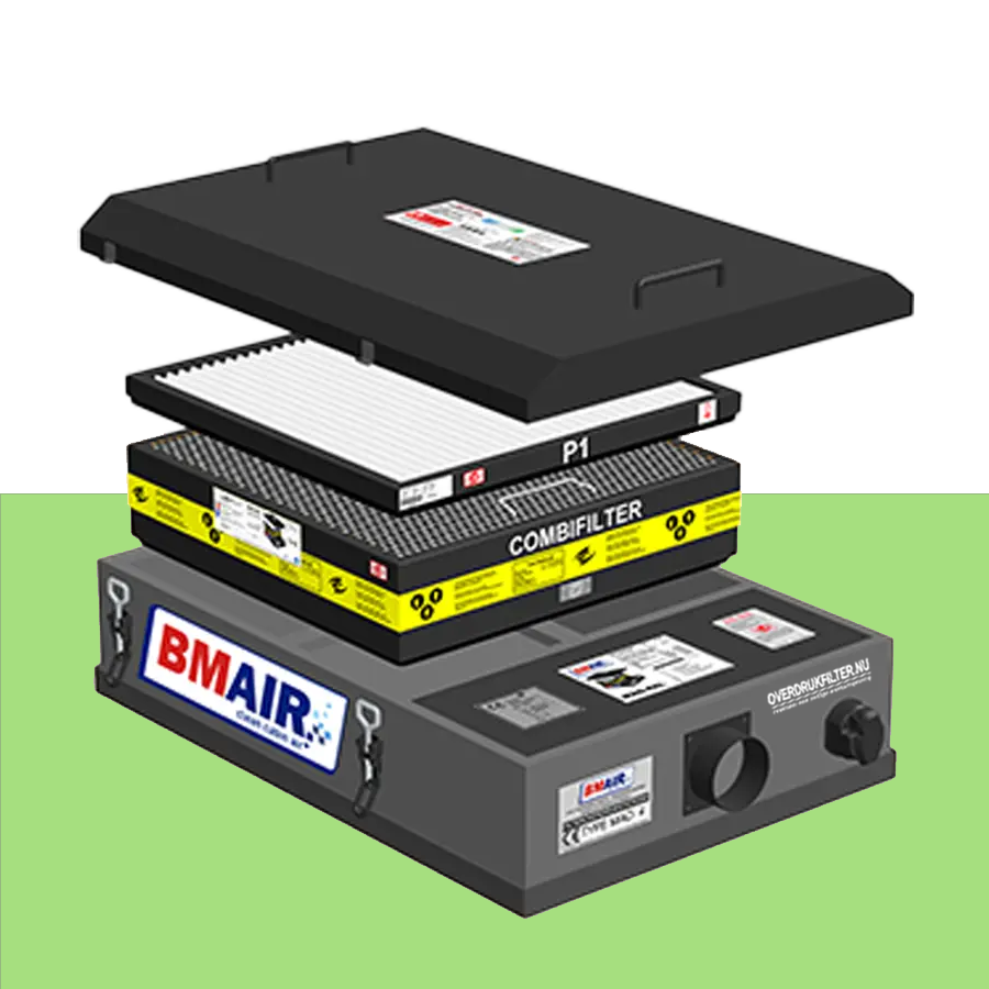 Overdrukfilter type: Partikel & HEPA 13 & 10kg actiefkool type AB
